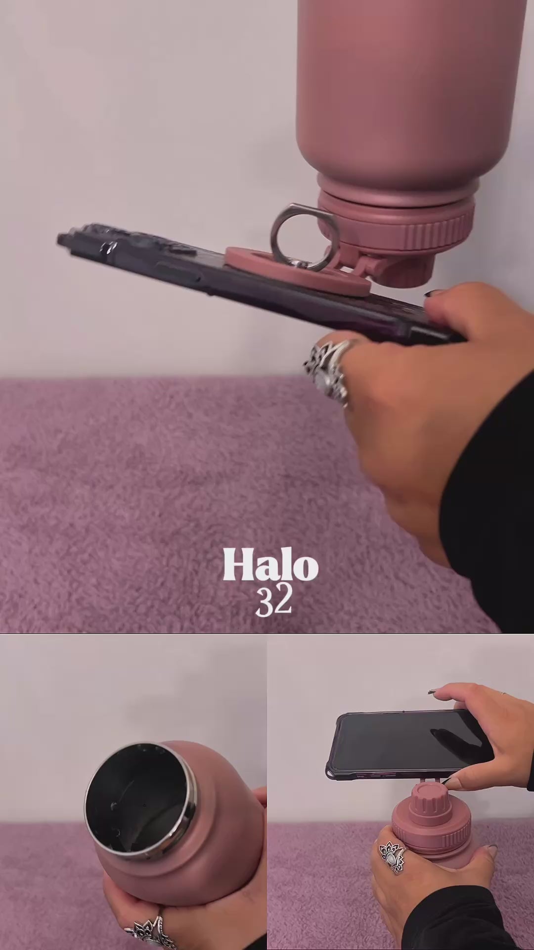 Crafted from BPA-free stainless steel with a soft-touch matte finish, this double-wall insulated bottle features a built-in phone-holder ring and includes a magnetic phone ring that attaches to your phone or case, making it easy to capture moments on the go.